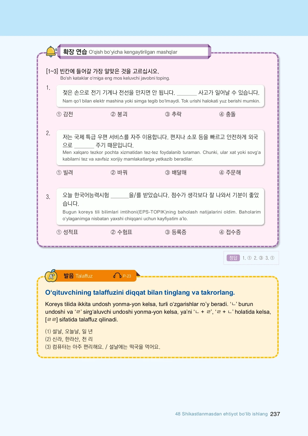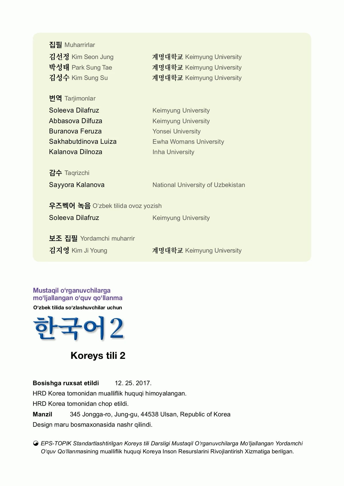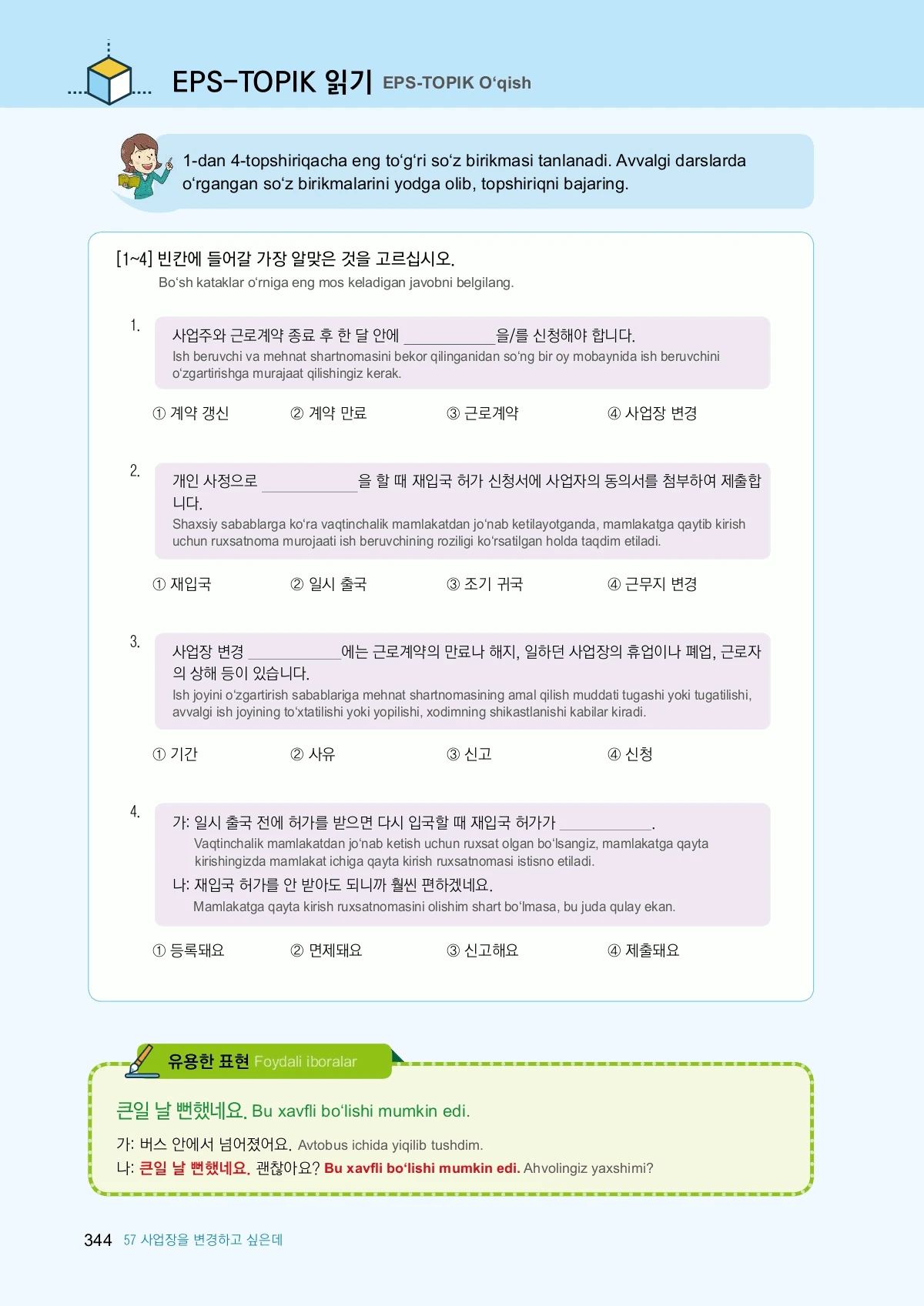 EPS-TOPIK Book Uzbekistan 2Aug 2, 2023Get Started Table of Contentsuz korea-2Frog Bobloves kimchi…NextEPS-TOPIK Book Uzbekistan 1PreviousEPS-TOPIK Book Vietnam 1RelatedEPS-TOPIK Book English 2EPS-TOPIK Book Sri Lanka 2EPS-TOPIK Book Myanmar 2EPS-TOPIK Book Thailand 2EPS-TOPIK Book Uzbekistan 1